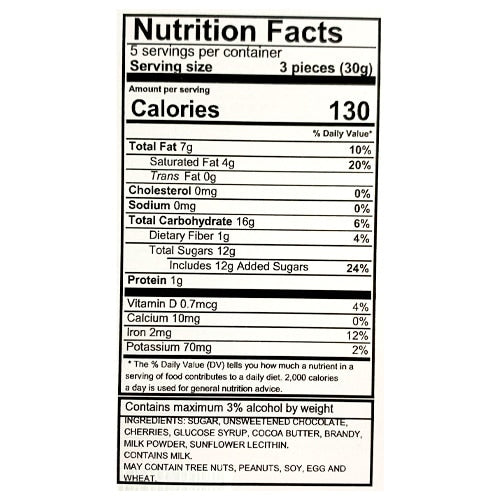 Dark chocolate pralines with German brandy and cherry filling. A tradition for the winter months.